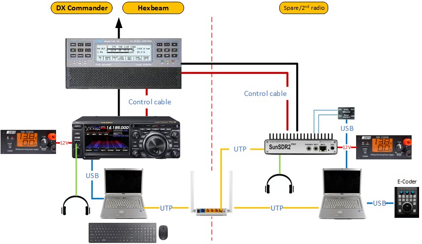 Below is the configuration of the station setup. I bring now also my recent purchase of the Yaesu FTDX-10.