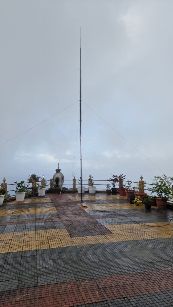 Arrived at Paro where my guide was waiting for me. On our way to Dochula,we stopped at a hardware shop to buy an adapter tofit my Hexbeam on a 2″ pole. After arrival we started to assemble the DX Commander and placed it on the terras. Because they are renovating the hotel, I’m the only guest. So no disturbance from guests but there is also less space to separate my antennas. Now both the Hexbeam and DX Commander need to be on the same terras.
